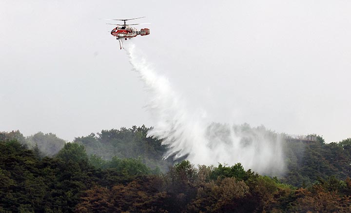 - 군 헬기 조종사들에게 산불진화용 물 투하 교육훈련 실시
