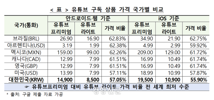 - 유튜브 앱/웹 내 ‘프리미엄 라이트’ 메뉴 신설 예정