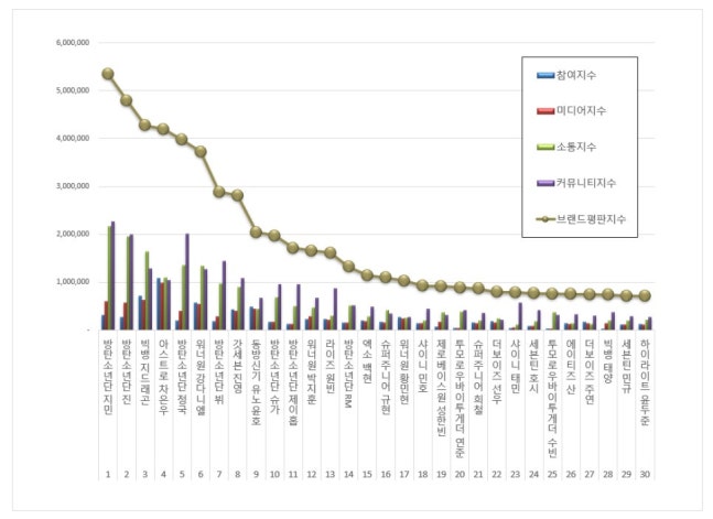 | 1 | 방탄소년단 지민 | BTS | 5,349,496 | 전월대비 15.10% 하락 |