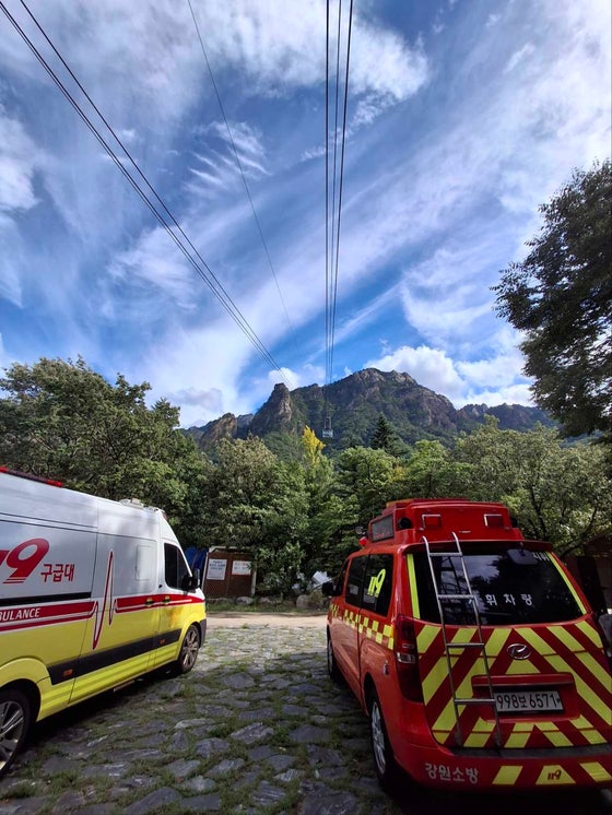 설악산 권금성 케이블카 70m 상공 정지…탑승객 86명 전원 구조 완료