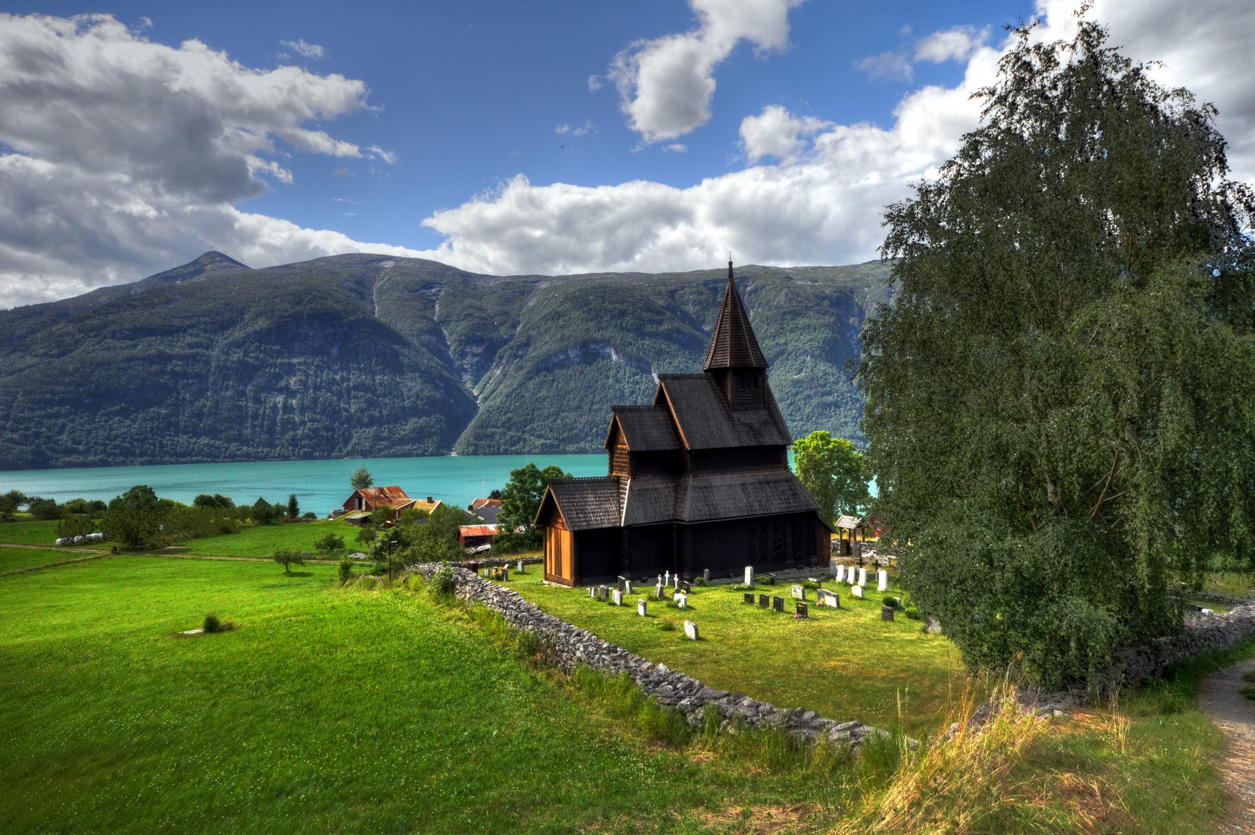 우르네스 목조성당은 “노르웨이에서 가장 아름다운 피오르드”라 불리는 송네피오르드 바로 곁,