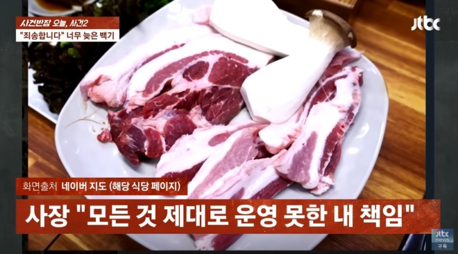 - “그날 병원 진료 때문에 자리를 비운 사이, 직원이 찌개용 앞다리 고기를 잘못 내놓은 것 같다”며 해명