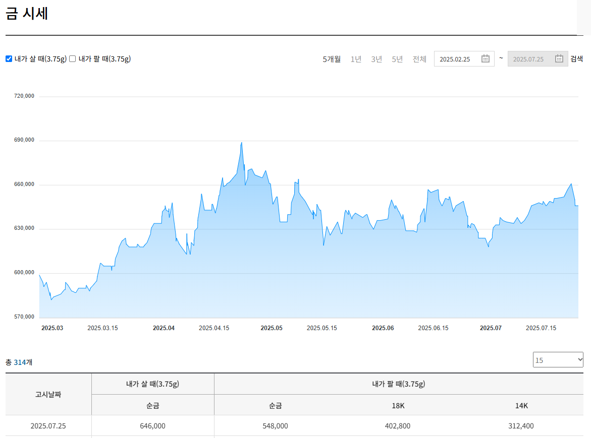- 2025년 7월 22일 기준 국제 금값은 3,428.92달러/트로이온스로 전월 대비 0.88% 상승