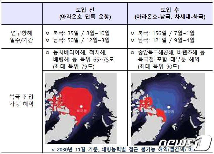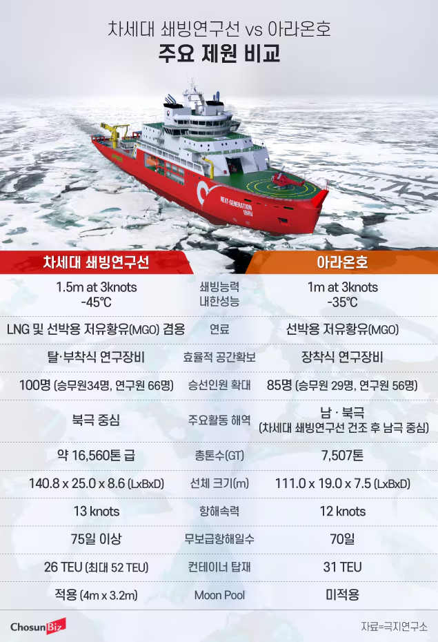 | 구분 | 아라온호 | 차세대 쇄빙연구선 |