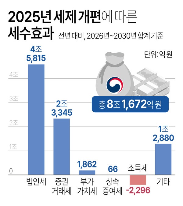 - 2026~2030년 사이 총 35조 6,000억 원 세수 증가 예상.
