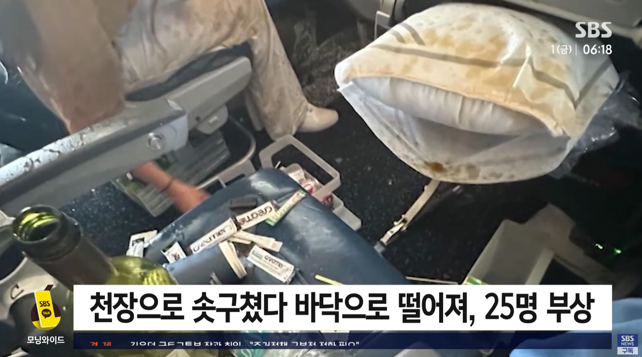 - 식기가 바닥에 떨어지고, 음료가 좌석과 승객 위로 쏟아지는 대혼란