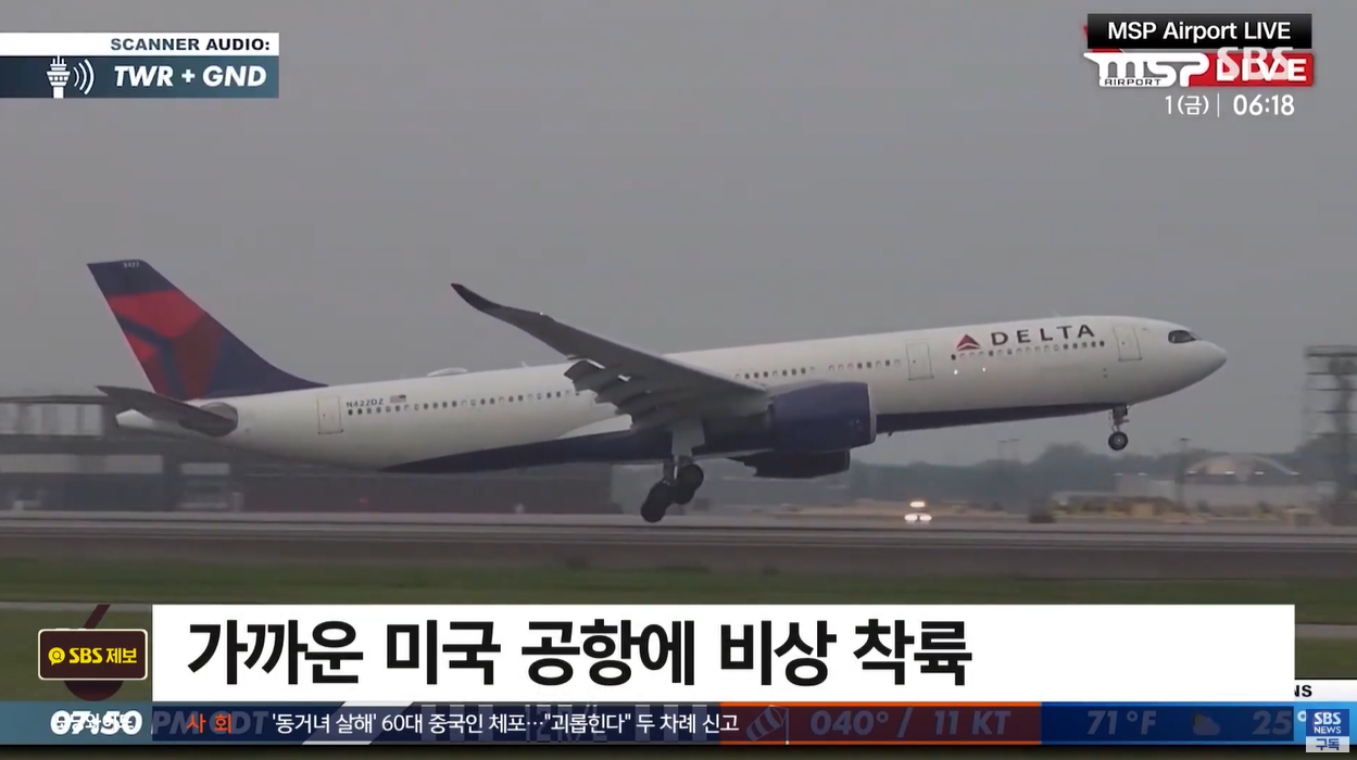 - 사고 직후 승무원과 승객 모두 신속 조치, 기장은 인근 미니애폴리스-세인트폴(MSP) 공항에 비상 착륙 결정