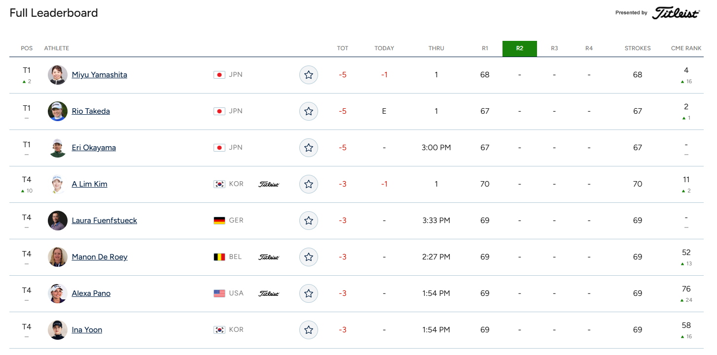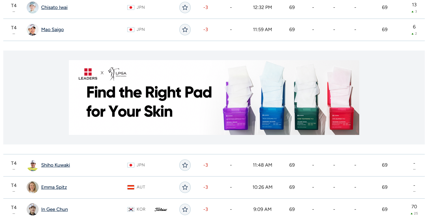 | 공동 4위 | 전인지, 윤이나, 사이고 마오, 구와키 시호, 이와이 치사토 외 총 9명 |