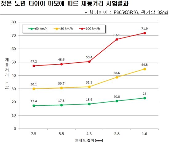 즉, 타이어 마모가 심할수록 제동에 필요한 거리가 훨씬 늘어나며, 응급상황에서 대형 사고로 직결될 위험이 커집니다.
