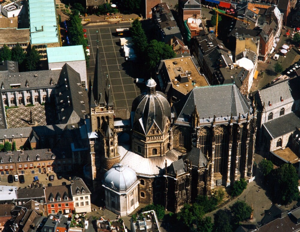 • 카롤링거 왕조의 성물인 샤를마뉴 왕좌도 내부에 보존되어 있으며, 이곳에서 936년부터 1531년까지 30명의 독일 왕들이 대관식을 치렀습니다.