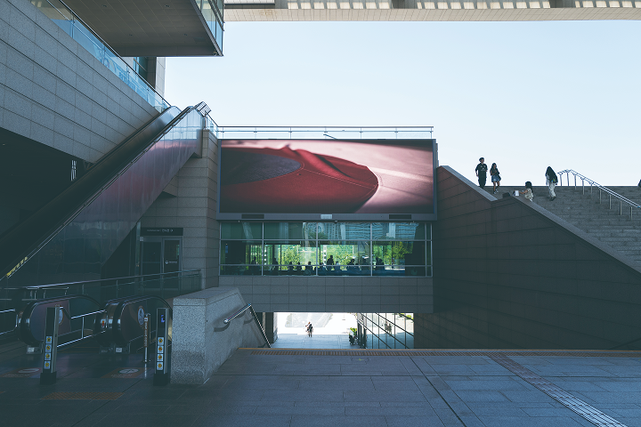 이 태극기는 2009년 은평구 진관사 부속 건물 해체 과정에서 발견됐으며, 3·1 운동과 대한민국 임시정부 수립 시기에 만들어진 것으로 독립의지를 담아낸 문화재로 평가받고 있습니다. 그 크고 웅장한 태극기가 노들섬 라이브하우스 건물 외벽(38.4×8.7m)을 장식하고, 2층 야외 노들스퀘어에는 ‘데니 태극기’를 비롯한 16점의 태극기 작품들이 시대 순으로 전시됩니다.