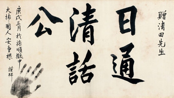 글씨 왼쪽에는 '경술이월 뤼순감옥에서 대한국인 안중근이 쓰다'(庚戌二月 於旅順獄中 大韓國人 安重根書)라고 적어 당시의 상황을 생생하게 전하고 있어요. 자신의 신념을 담아 남긴 이 한 폭의 글씨는 단순한 작품을 넘어, 한 독립운동가의 숭고한 정신과 삶의 철학을 고스란히 담고 있습니다.