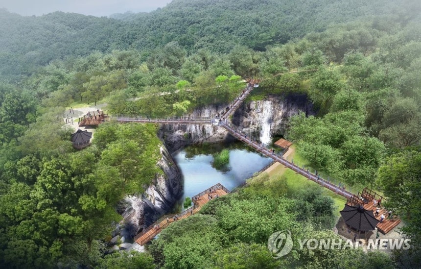 • 인공폭포와 다양한 포토스팟, 목재계단·펜스 등 정비된 산책로