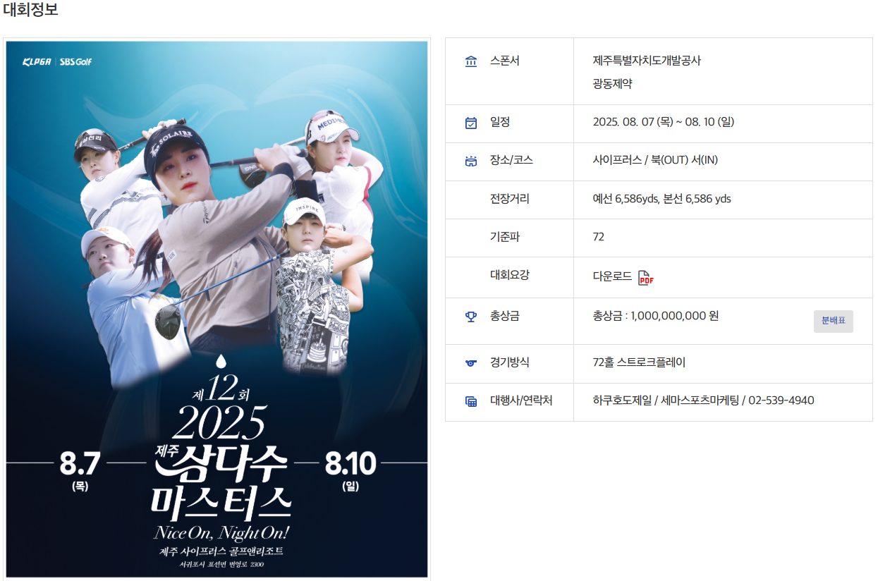 - 대회장소: 제주 서귀포시 ‘사이프러스 골프 앤 리조트’ (파72)