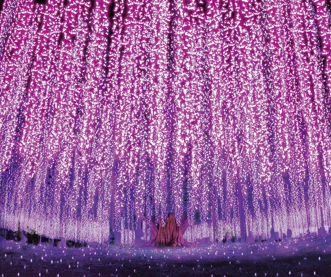 일본 도치기현 아시카가 플라워파크의 자랑, ‘아시카가 후지(Ashikaga Fuji)’! 정확히는 등나무(Wisteria)로, 만개할 때 2,000m² 면적을 보랏빛 꽃으로 덮어 환상적인 ‘꽃 폭포’를 연출합니다.