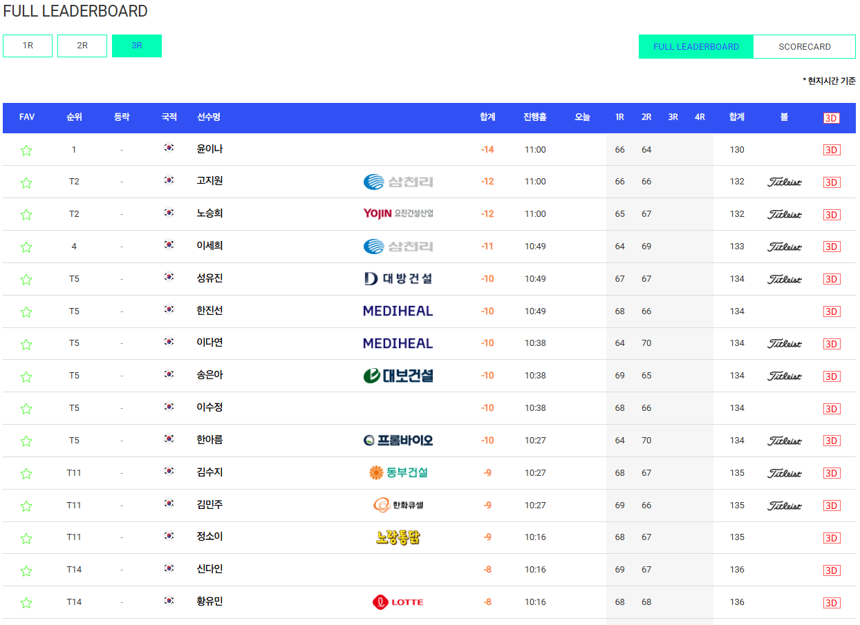 | 공동 11위 | 김수지 외 2명 | -9(135타) | 무빙데이 반전 가능성 있음 |