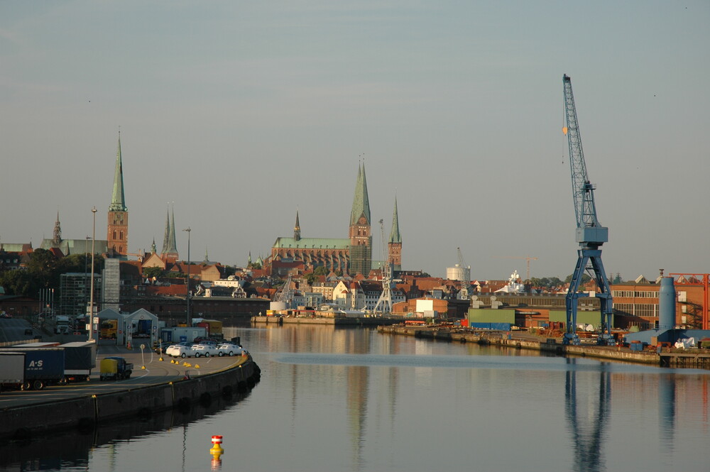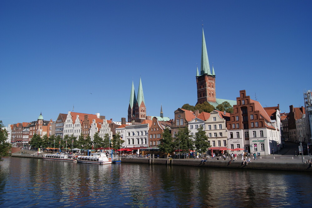 브랜드 마스코트 홀스텐문(Holstentor)을 필두로 한 구시가지의 일곱 첨탑,