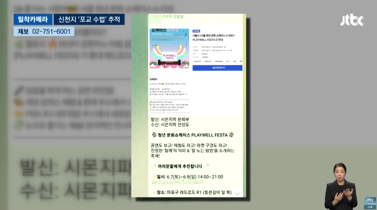 여기서 열린 ‘서울 청년 문화 쇼케이스’는 서울시에서 5천만 원을, 마포구에서 장소를 제공해 개최된 대표적 청년 행사로 포장되었습니다. 무대 위에는 20대 청년들이 자연스럽게 손을 흔들고 노래하지만, 면밀히 들여다보면 그 구성원 대부분이 신천지 신도입니다. 지자체 지원을 등에 업은 이 숨은 작전, 그 안에서는 어떤 일이 벌어지고 있을까요? 🚩