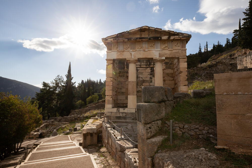 - 아폴론 신전 위쪽에 위치한 야외 극장으로, 피티아 경기의 예술 경연 장소였습니다. 기원전 4세기에 건설되어 약 5천 명을 수용할 수 있습니다. 🎭