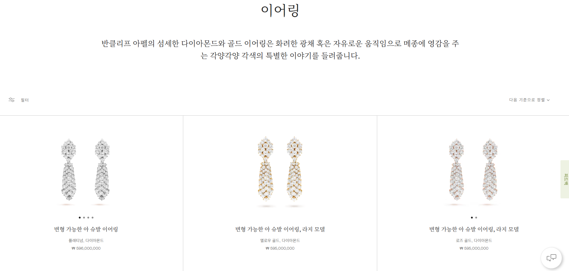 | 페를레® (Perlée®) | 황금 구슬 | 조화로운 곡선, 미러 폴리싱, 클로버 모티프 (일부) | 골드, 다이아몬드 |