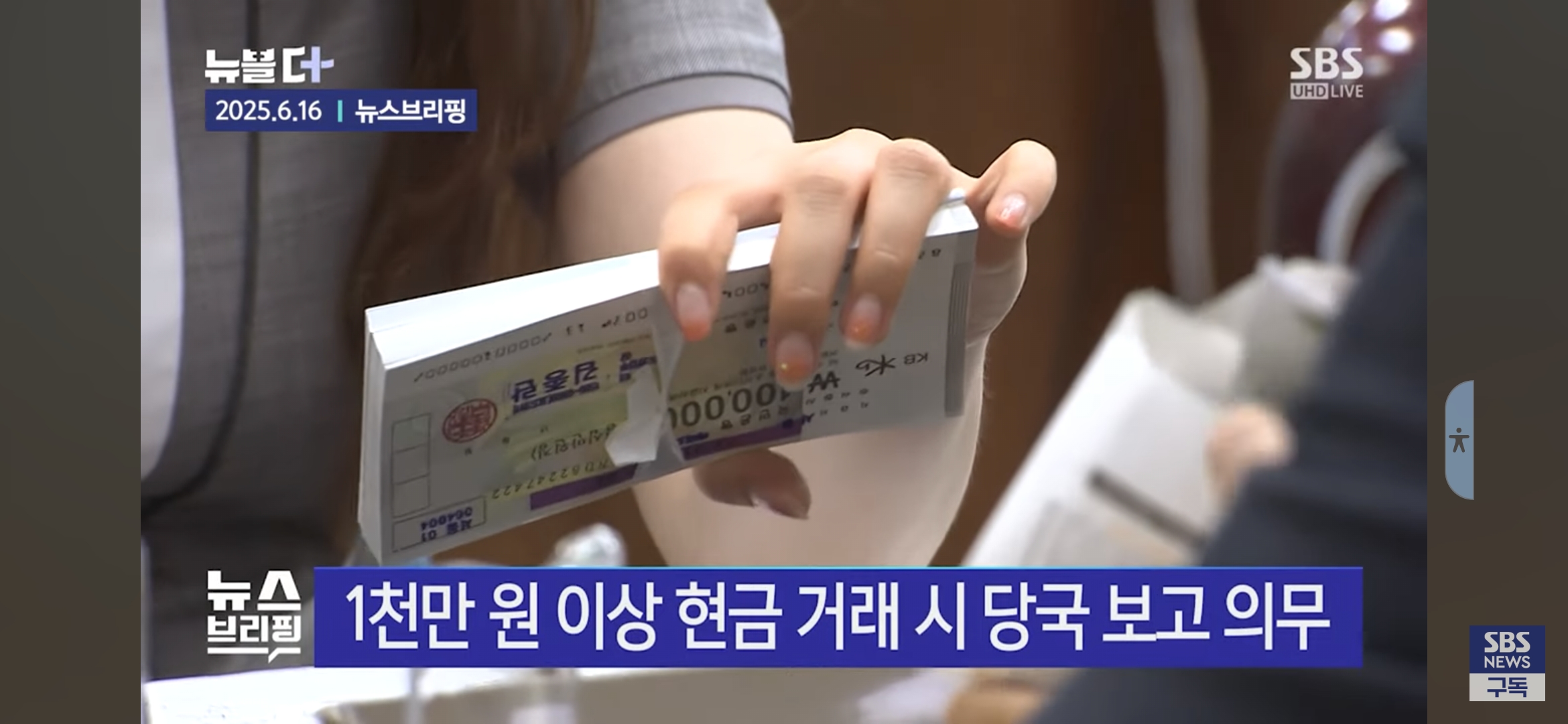 현행 관련법(특금법)에서 ‘보고해야 하는 금액’은 1,000만 원 이상이 기준입니다.