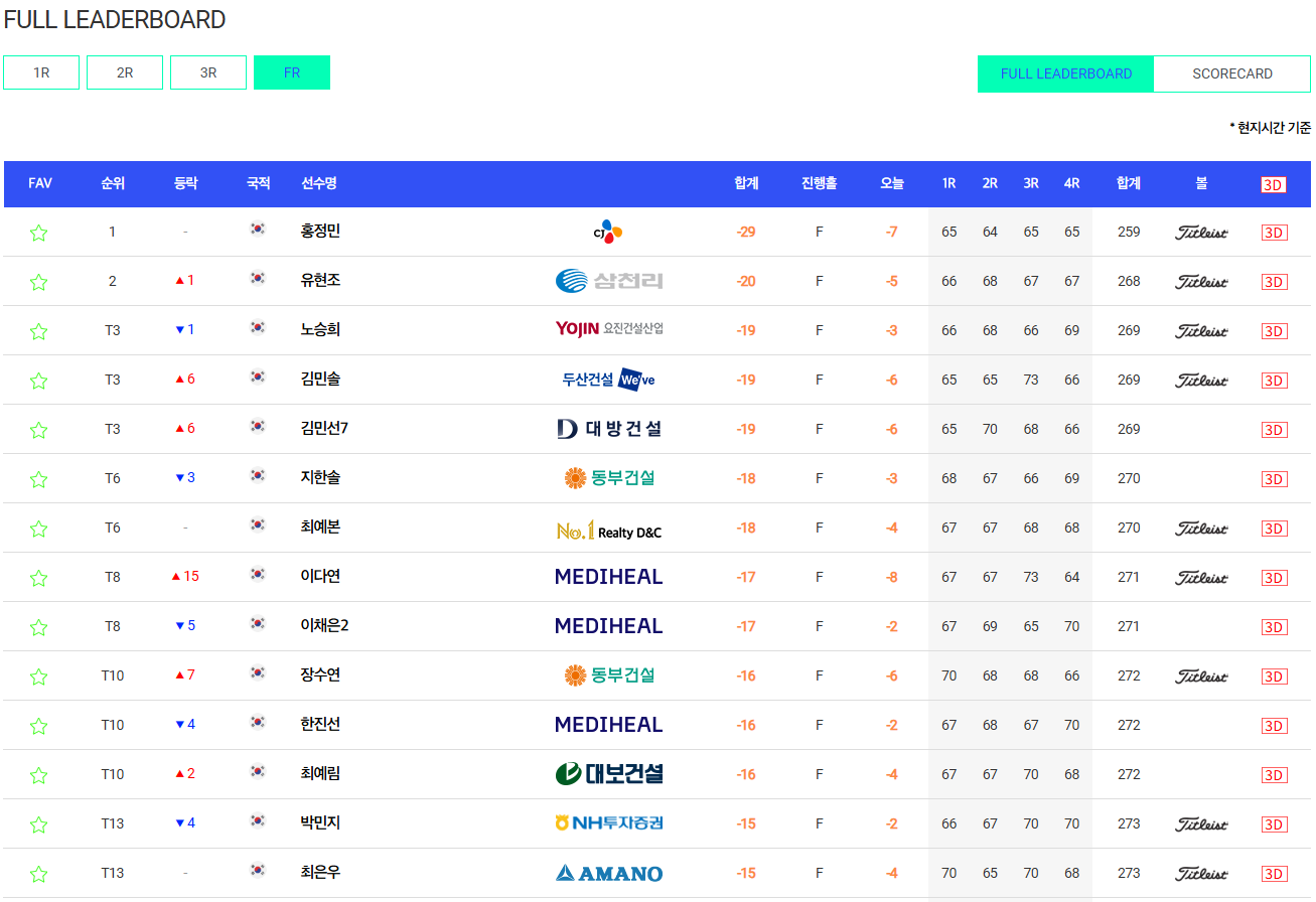 - 김민솔(드림투어 스타) : 269타(-19), 김민선·노승희와 공동 3위