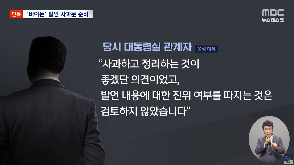 일각에서는 대통령이 “사과” 방안에 격하게 반대했다는 내막이 전해졌습니다.