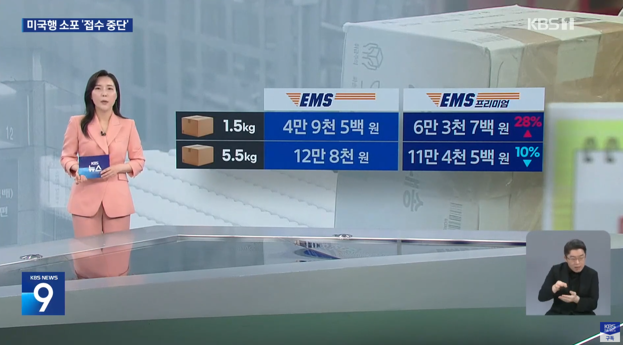 급변하는 관세 제도에 대비해 우체국은 적절한 시스템을 갖출 시간이 부족해 부득이 항공소포는 8월 25일부터, EMS는 8월 26일부터 접수를 잠정 중단했습니다.