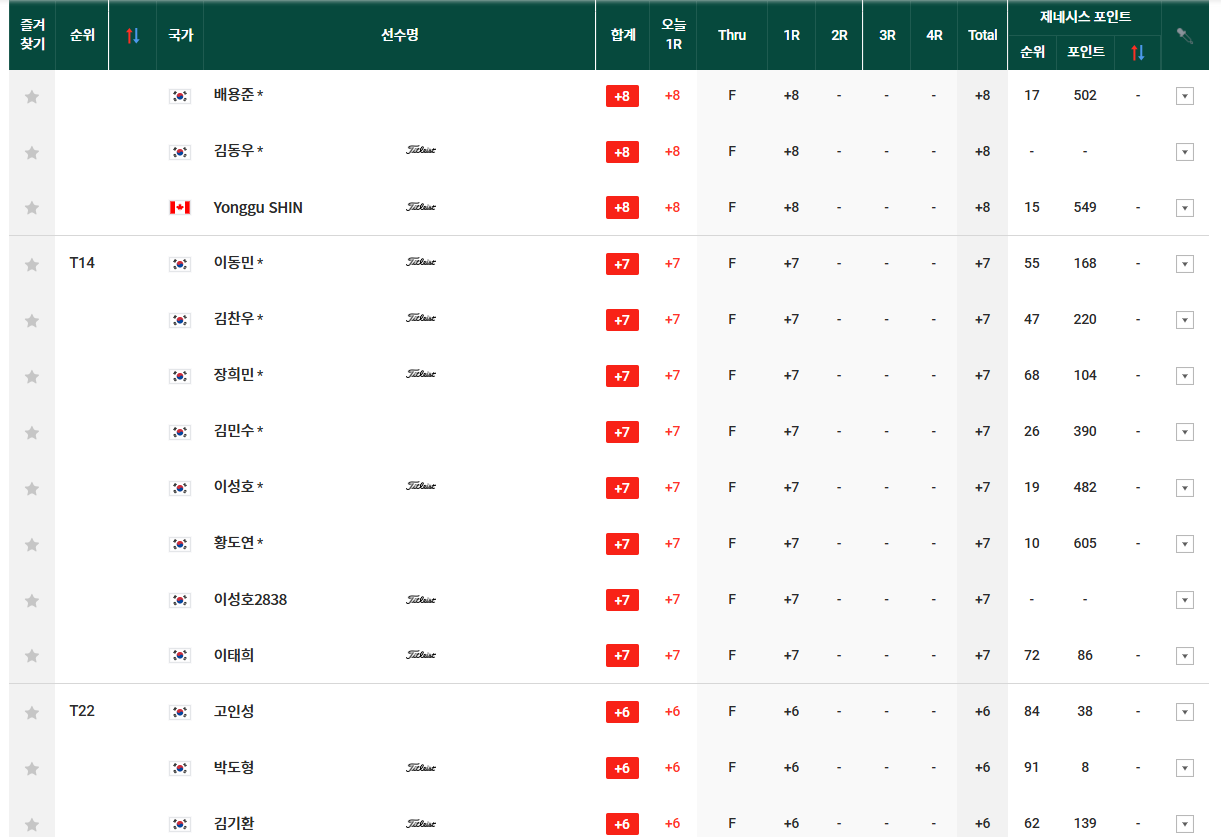 KPGA_KPGA클래식 리더보드(1R)
