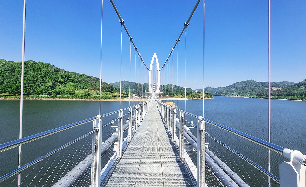 - 2023년 정식 개통된 붕어섬 출렁다리는 길이 420m에 폭 1.5m의 아찔한 구조로,