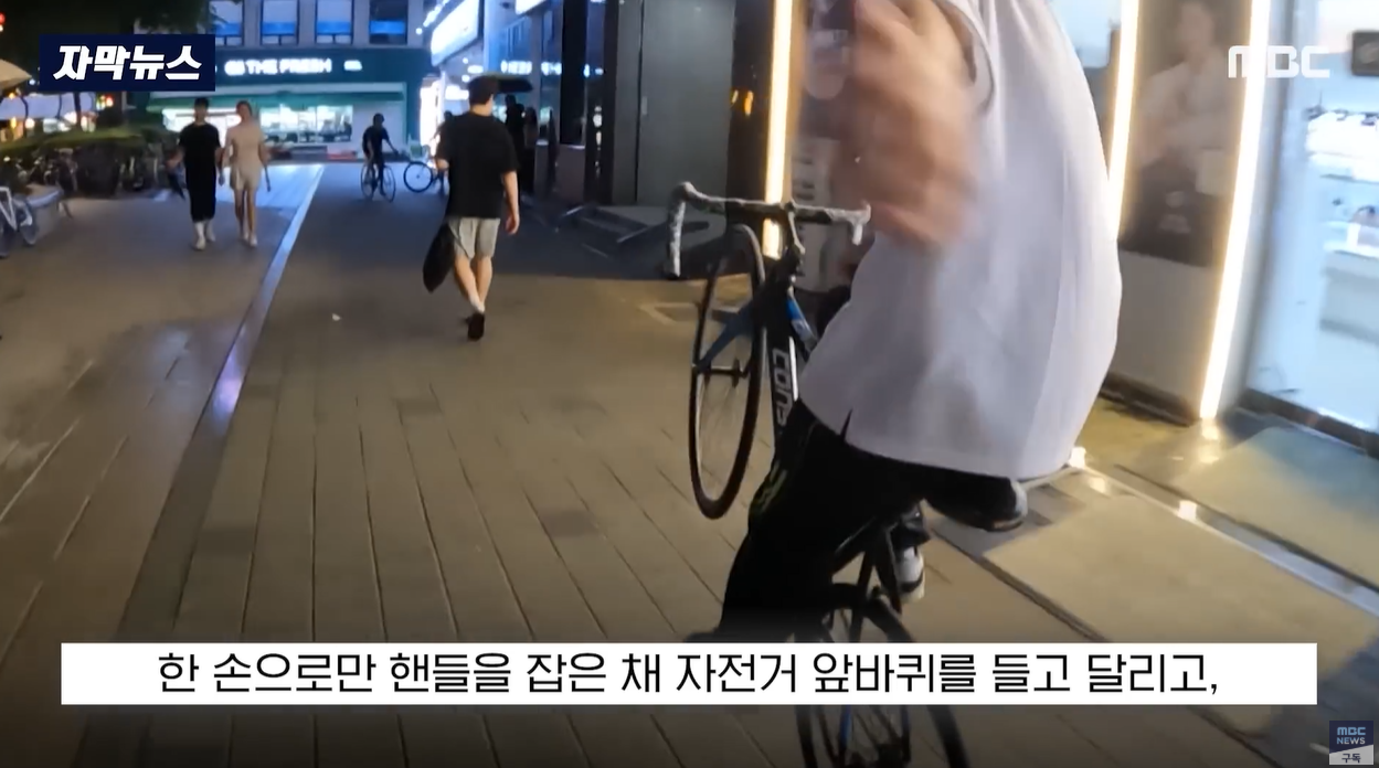 MBC 뉴스팀은 서울 도심과 골목길에서 픽시자전거를 실제로 탑승하며 브레이크가 없으니 어떻게 멈추는지 테스트했습니다.
