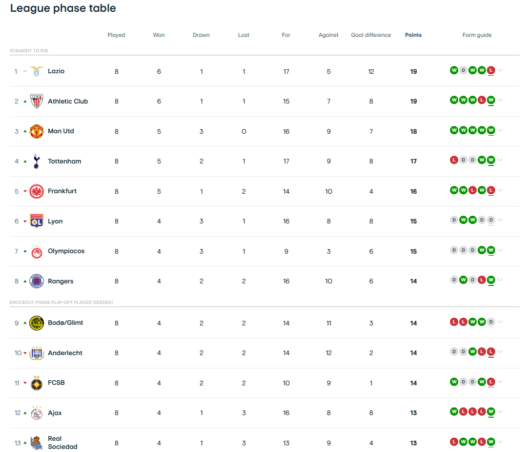 2024–25 시즌부터 유로파리그는 새로운 포맷, '리그 페이즈'로 재편되며 큰 변화를 맞이했습니다. 기존의 조별리그 대신, 참가 36개 팀이 단일 리그 테이블에서 경쟁하며 상위 8개 팀이 자동으로 16강에 진출하고, 9위~24위는 플레이오프를 거치게 되는 방식입니다.