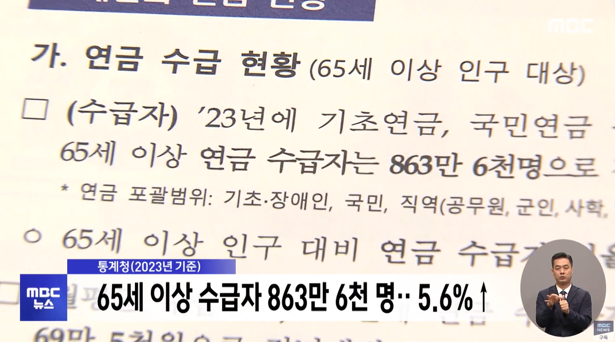 2023년을 기준으로 65세 이상 연금 수급자는 약 863만 6천 명에 달해 전년 대비 5.6% 성장했습니다.