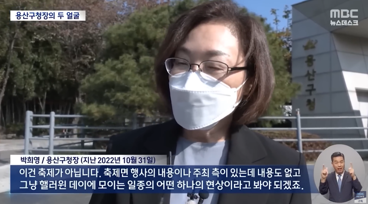 • 모순된 '박희영 구청장'의 입장: ⚖️ 이번 논란에서 가장 비판을 받은 것은 박희영 용산구청장의 입장 변화였습니다. 참사 직후, 박 구청장은 "이태원 참사는 주최가 없는 현상일 뿐, 단순히 사람들이 모인 것이어서 본인에게 안전 책임이 없다"고 주장하며 법적 책임을 회피하려 했습니다. 그러나 이번 수상에서는 정반대로 "주최 없는 축제라도 안전을 책임져야 한다"는 원칙을 내세웠습니다. 유가족들은 이러한 모순된 행동을 "스스로 안전 책임을 부정했다가, 이제 와서 그 원칙으로 상을 받는 이율배반"이라고 강하게 비판했습니다.