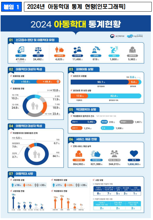 - 30명, 여전히 너무나 많은 숫자: 😢 2024년 아동학대로 사망한 아동은 30명으로, 전년보다 14명 감소했습니다. 이는 분명 긍정적인 변화이지만, 여전히 한 명의 생명이라도 잃어서는 안 되는 아픔입니다.