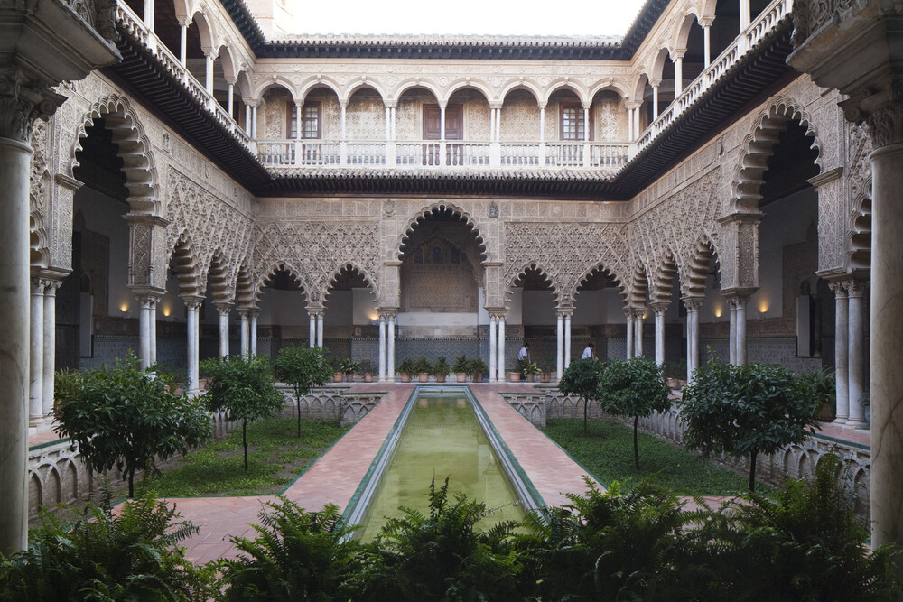 기독교인들이 세비야를 되찾은 후, 카스티야의 페드로 1세는 무어인 건축가들을 고용해 이 궁전을 재건했습니다. 이로 인해 이슬람 양식과 기독교 양식이 혼합된 무데하르 양식의 걸작이 탄생했죠. 알카사르는 지금도 스페인 왕실의 공식 거주지로 사용되고 있어 '왕궁'이라는 위엄을 잃지 않고 있습니다.