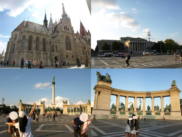 * 영웅광장_헝가리 건국 1000년 및 위대한 인물들을 기리기 위하여 1896년에 조성된 광장입니다. 광장 중앙에 36m 높이의 밀레니엄 기념탑 꼭대기에는 가브리엘 대천사의 조각상이 있으며, 양 옆으로는 총 14명의 인물 동상이 있습니다. 광장 옆으로는 서양근대미술관(Szépmüvészeti Múzeum)이 자리하고 있으며, 라파엘로, 고흐, 마네, 모네 등유명 작가들의 작품들이 전시되어 있습니다.