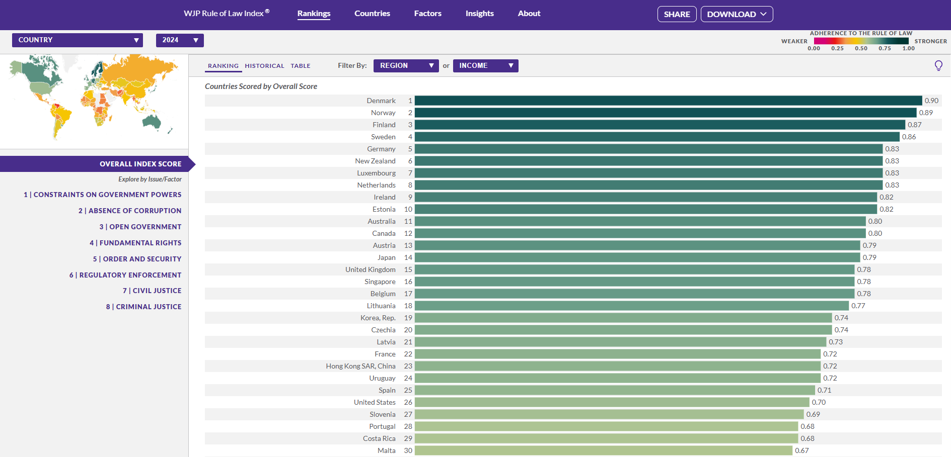 ⚖️ 2024년 '법치주의 지수' 총정리! 대한민국의 순위와 핵심 평가