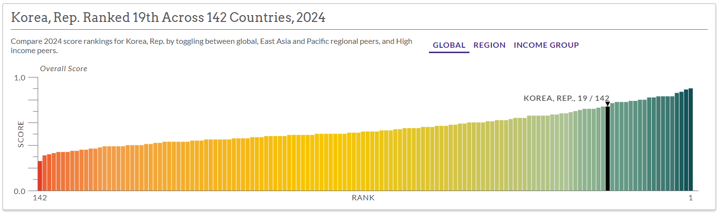 세계 순위: 142개국 중 19위를 기록하며 최상위권에 근접한 수준을 유지했습니다.