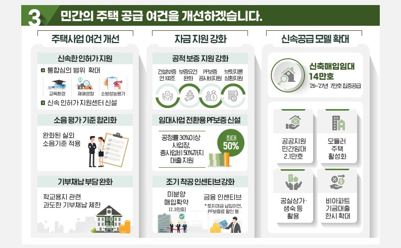 정부는 공공 부문뿐만 아니라, 민간의 주택 공급을 촉진하기 위한 다양한 지원책도 함께 내놓았습니다.
