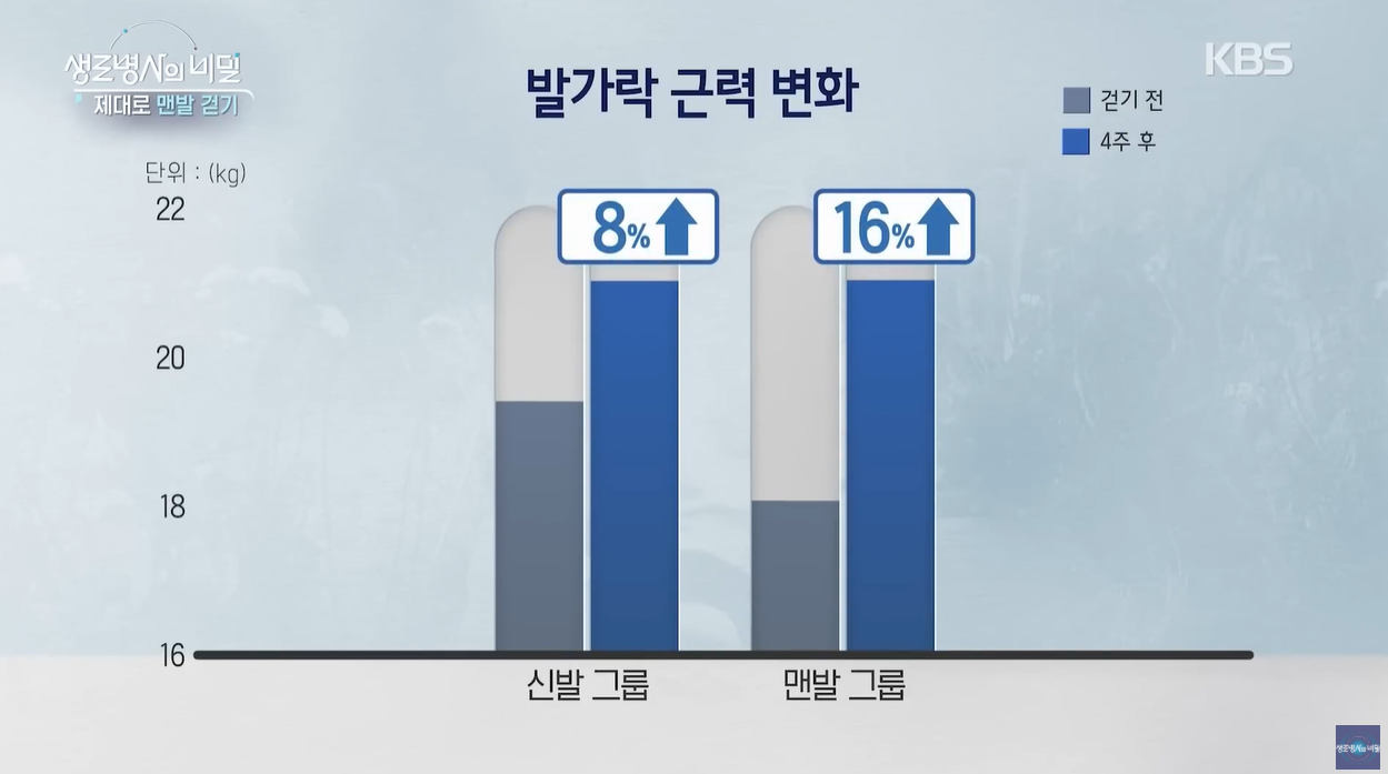 한 방송사에서 진행한 맨발 걷기 4주 실험은 이론적 효과를 실제로 증명하며 큰 화제가 되었습니다.