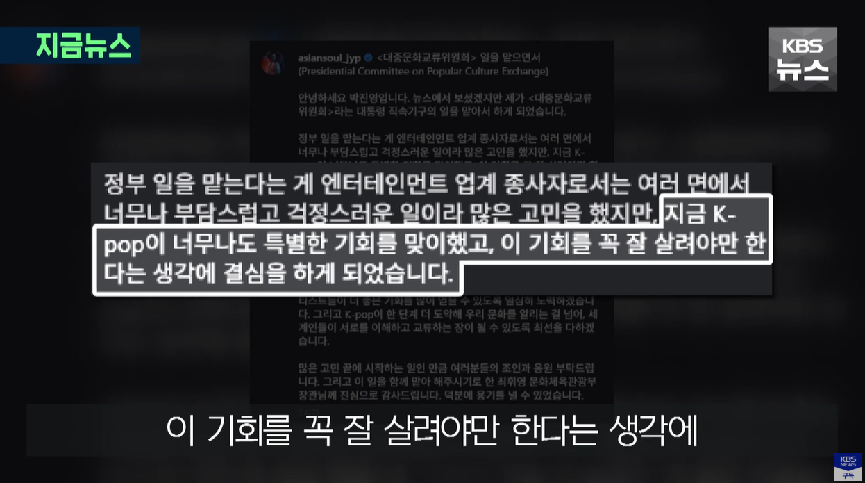 ⭐ K-컬처의 새로운 시작! ‘박진영’ JYP 수장, ‘대통령 직속 대중문화교류위원회’ 공동위원장 임명