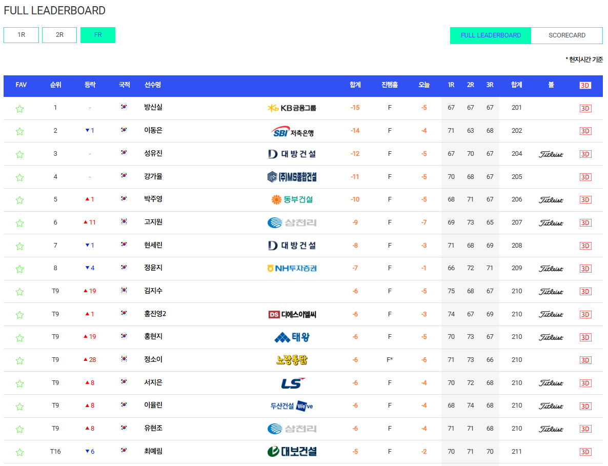 운명을 가른 17번 홀: 승부의 향방을 결정지은 것은 17번 홀(파3)이었습니다. 155m 거리의 파3 홀. 방신실 선수는 흔들림 없는 집중력으로 티샷을 날렸고, 공은 홀컵 1m도 안 되는 거리에 정확히 떨어졌습니다. 이어진 버디 퍼트를 깔끔하게 성공시키며, 14언더파로 단독 선두로 치고 나가는 데 성공했습니다.
