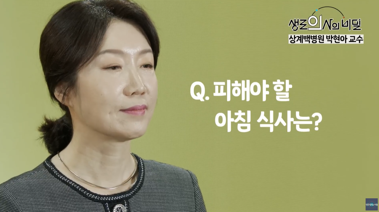 '아침밥은 먹어야 한다'는 상식에 대해, 박현아 교수는 단호하게 '필수'라고 강조합니다.