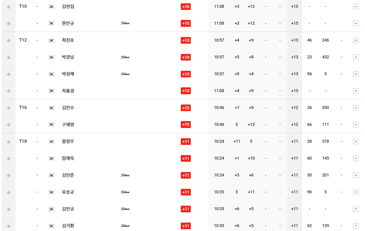 - 최승빈, 임예택: 각각 총 18점으로 공동 7위에 올랐습니다.