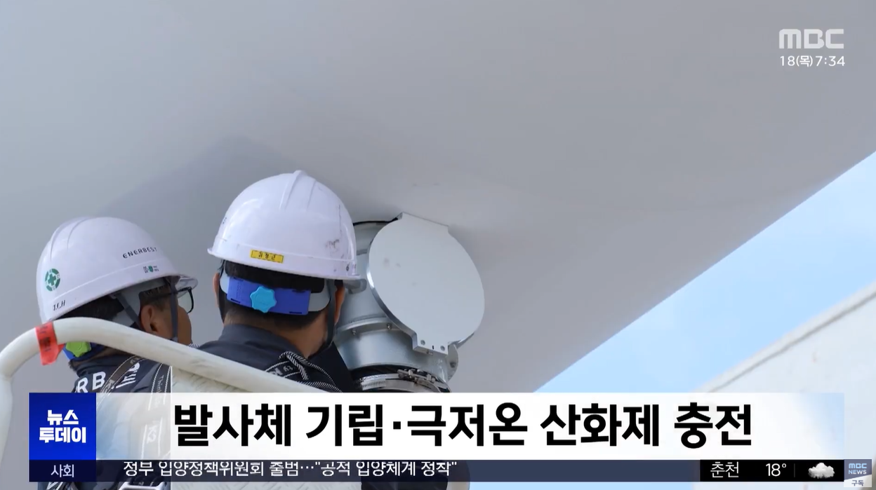 강력한 기계음이 계속되는 가운데 "누리호 정기 점검 관련 준비 작업이 현재 진행 중입니다"라는 안내 방송이 흘러나오자, 안전 헬멧을 착용한 연구진들이 발사체 곳곳을 바쁘게 오가며 각종 장비들을 꼼꼼히 검사하고 있었습니다. 현장 전체가 긴장된 분위기로 가득했으며, 안전 헬멧을 착용하지 않은 언론진들의 근접 취재는 엄격히 제한된 상황이었습니다.