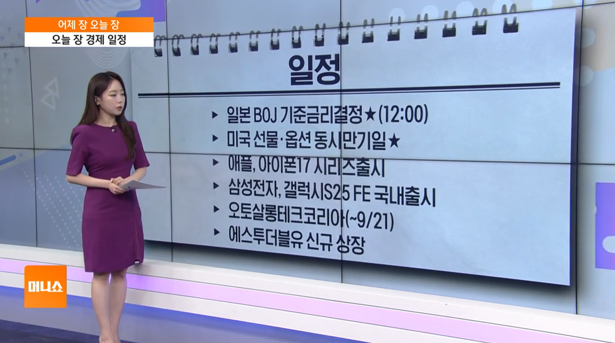 오늘 일본은행의 정책금리 결정과 더불어 애플 및 삼성전자의 신제품 발표, 그리고 AI 관련 기업인 S2W의 코스닥 상장 등 다양한 이슈들이 대기하고 있습니다.