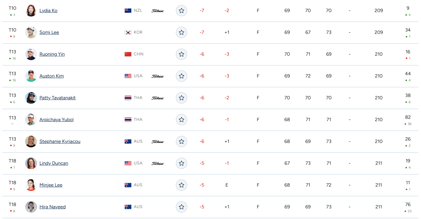 - 넬리 코다: 1번 홀에서 보기를 범했지만 이후 5개의 버디를 추가하며 4언더파 68타를 기록, 중간 합계 12언더파로 공동 3위에 자리했습니다.