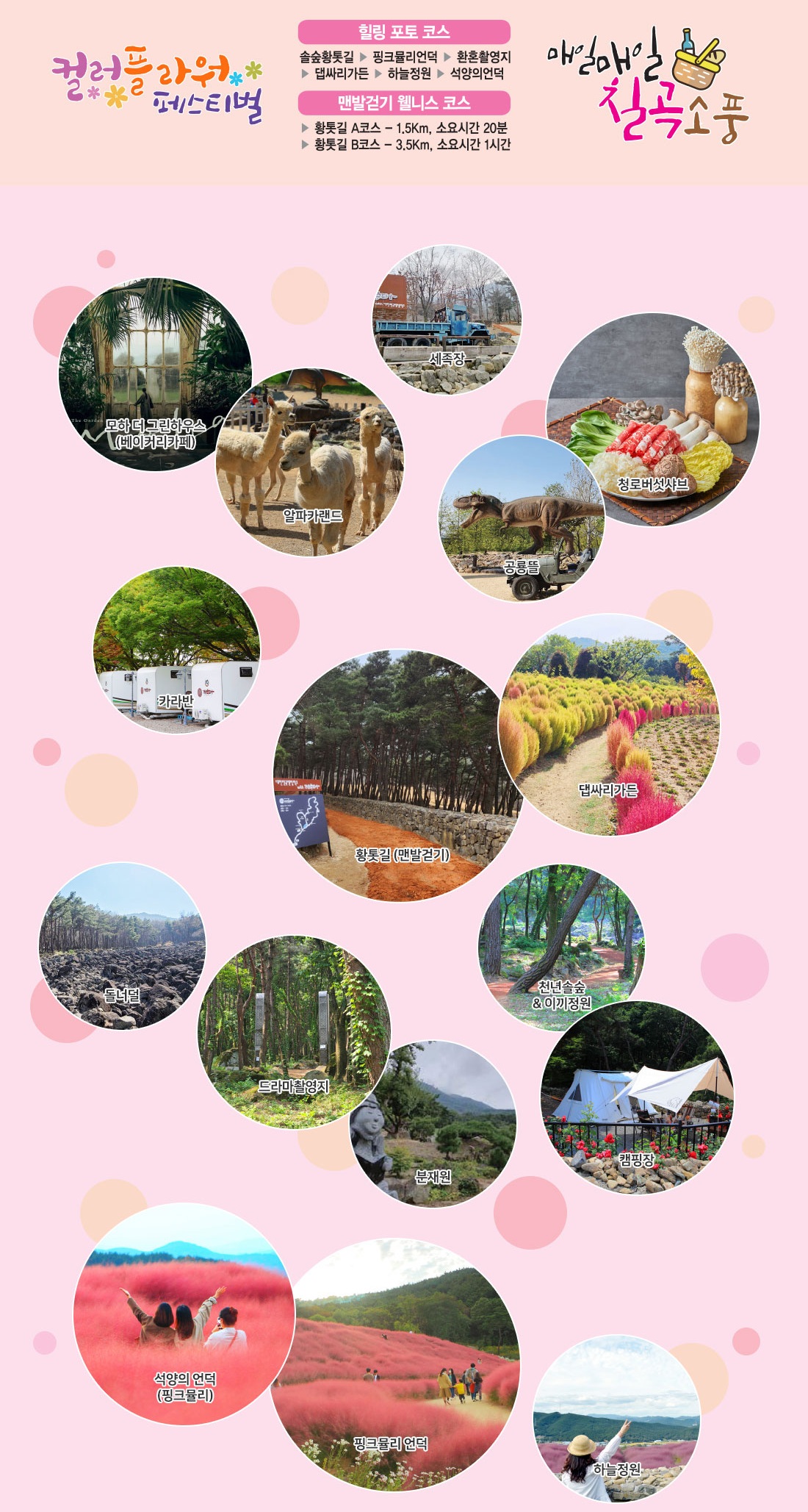 - 사진 찍기 좋은 스폿: 핑크뮬리 밭 곳곳에는 사진 찍기 좋은 포토존이 마련되어 있습니다. 벤치, 아기자기한 조형물 등이 있어 연인, 친구, 가족과 함께 아름다운 추억을 남기기에 완벽합니다.