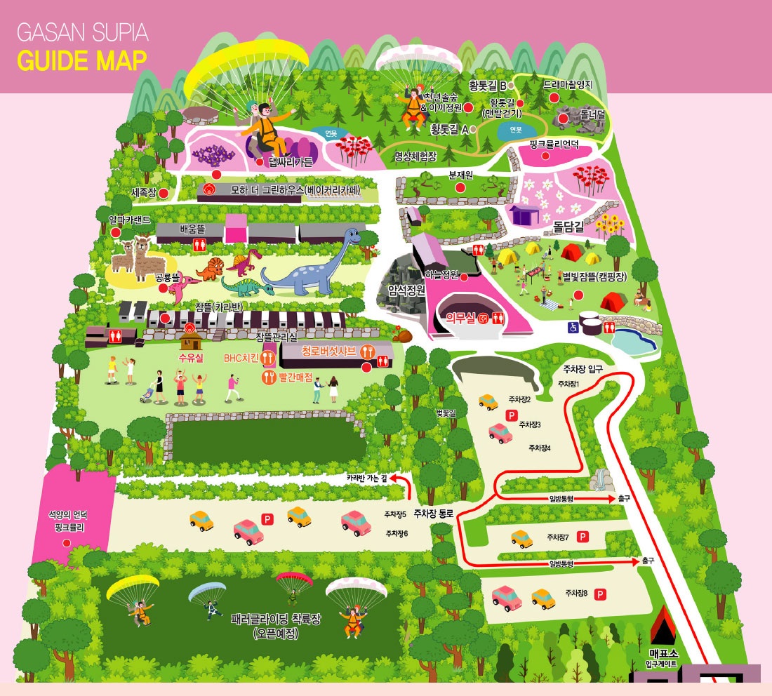 가산수피아는 경북 칠곡의 자연이 선사하는 아름다움과 인간의 정성이 만나 탄생한 특별한 공간입니다. 핑크뮬리의 몽환적인 풍경부터, 아이들의 웃음소리가 가득한 공룡 테마파크, 그리고 고요한 숲길을 따라 걷는 힐링의 시간까지, 이곳에서는 모든 이들이 자신만의 '유토피아'를 찾을 수 있습니다.